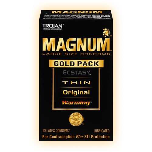 When you unwrap an iconic gold Trojan™ Magnum™, you know you’re going big. These large and XL size condoms have features like thinness and ribbing to scale up your (and their) pleasure to larger proportions.