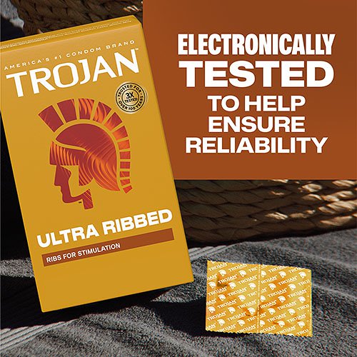 Turn the volume up to 11. Trojan™ Ultra Ribbed Condoms are here to take stimulation to new heights with deep ribs crafted for sensationally stimulating pleasure. Grab the iconic yellow wrapper and get ready to bump and grind.