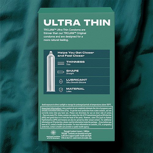 The closeness you crave. Trojan Ultra Thin Condoms are designed for a more natural feeling. Heighten every moment with condoms that are thinner than Trojan Original latex condoms. Featuring a special reservoir tip to provide extra peace of mind.